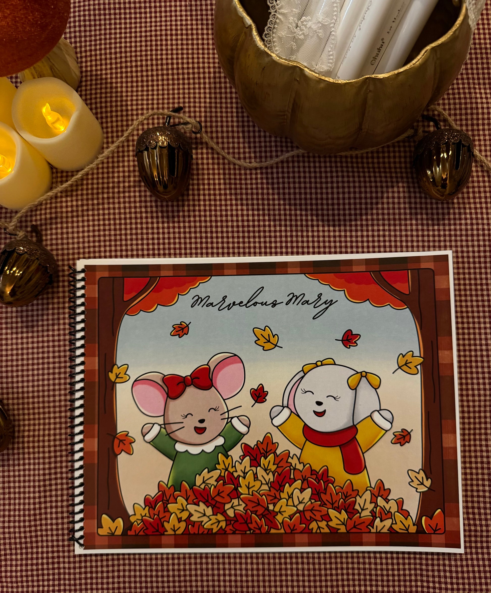 Step into the cozy charm of autumn leaves and the wonder of winter snow with Mary and her family! This seasonal coloring book is filled with whimsical illustrations of crisp fall adventures, holiday cheer, and snowy day fun! Whether you’re sipping hot cocoa, waiting for the holidays, or just need a moment of calm, this book makes the perfect cozy companion.